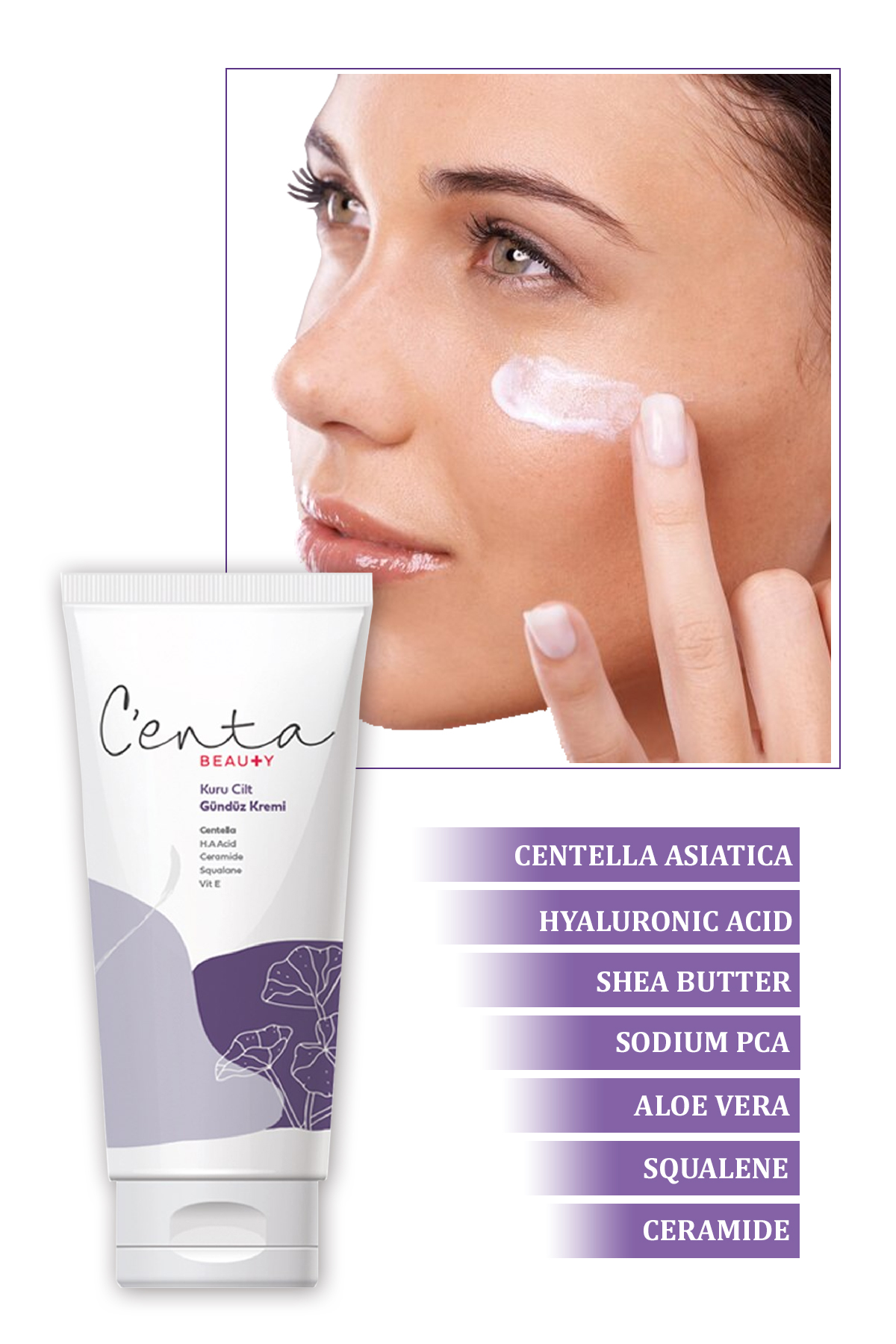 Paket İçeriği : C’enta Beauty Kuru Ciltlere Özel Gündüz Bakım Kremi 50ml