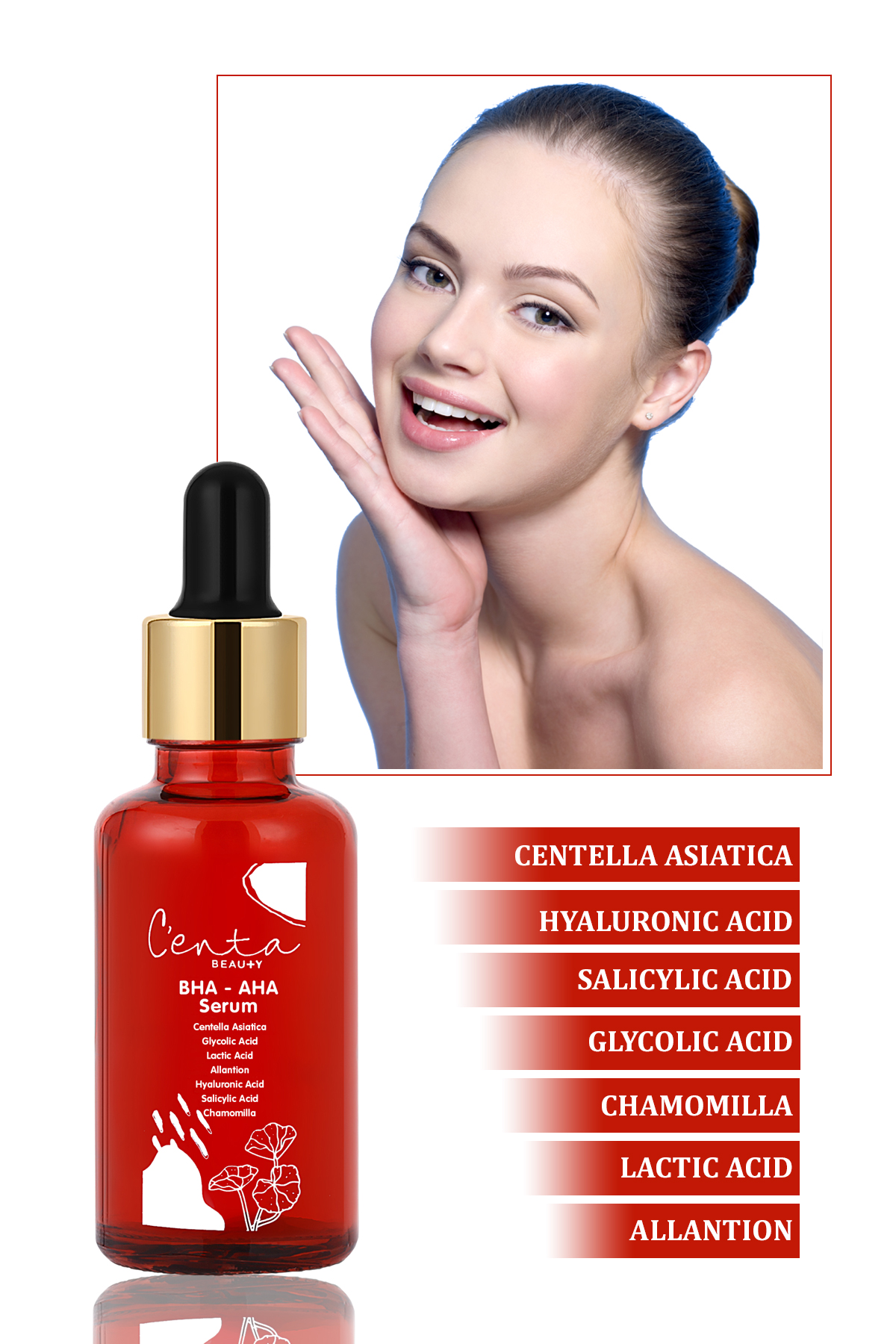 – C’enta Beauty BHA – AHA Serum : Cildinize derinlemesine etki eder, ölü hücrelerden arındırır ve cilt yüzeyini yeniler. Cildin daha pürüzsüz, taze ve aydınlık görünmesini sağlar. BHA ve AHA asitleriyle cildinizi derinlemesine temizler, gözenekleri sıkılaştırır. Ürünü incelemek için tıklayınız.